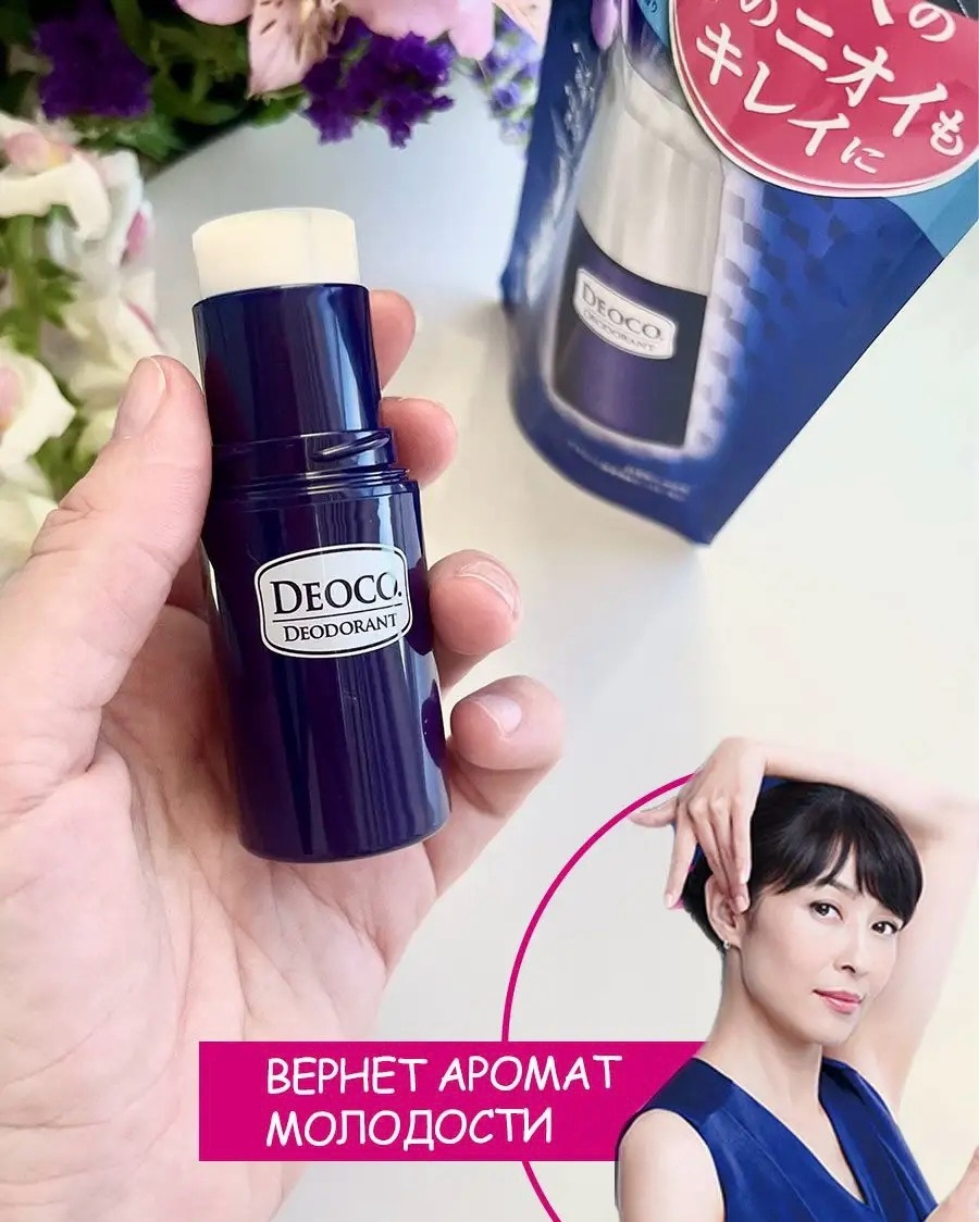 Продукты для ухода за кожей Deoco нейтрализуют компоненты пота с неприятным возрастным запахом и содержат лактон, который помогает женщине в любом возрасте ненадолго вернуться в возраст юности и свежести.